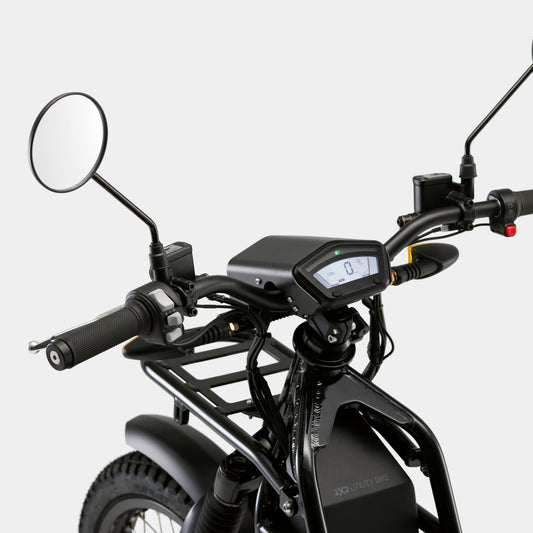 Streamlined dashboard view with LCD display shows speed, power levels, and more.