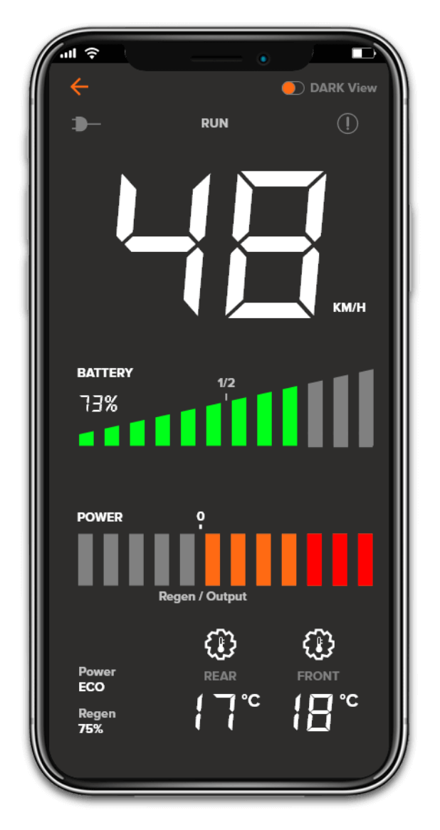 Connect and communicate directly with the bike’s onboard vehicle management system via the handy UBCO App. Take control with real time performance for your bike and customise your riding experience.