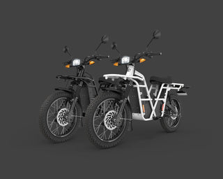 The rear-wheel hub-drive DUTY is practical, robust, and easy to ride. With a top speed of 95kph/60mph, a class leading carry capacity, and extra long range, this bike is built for duty.